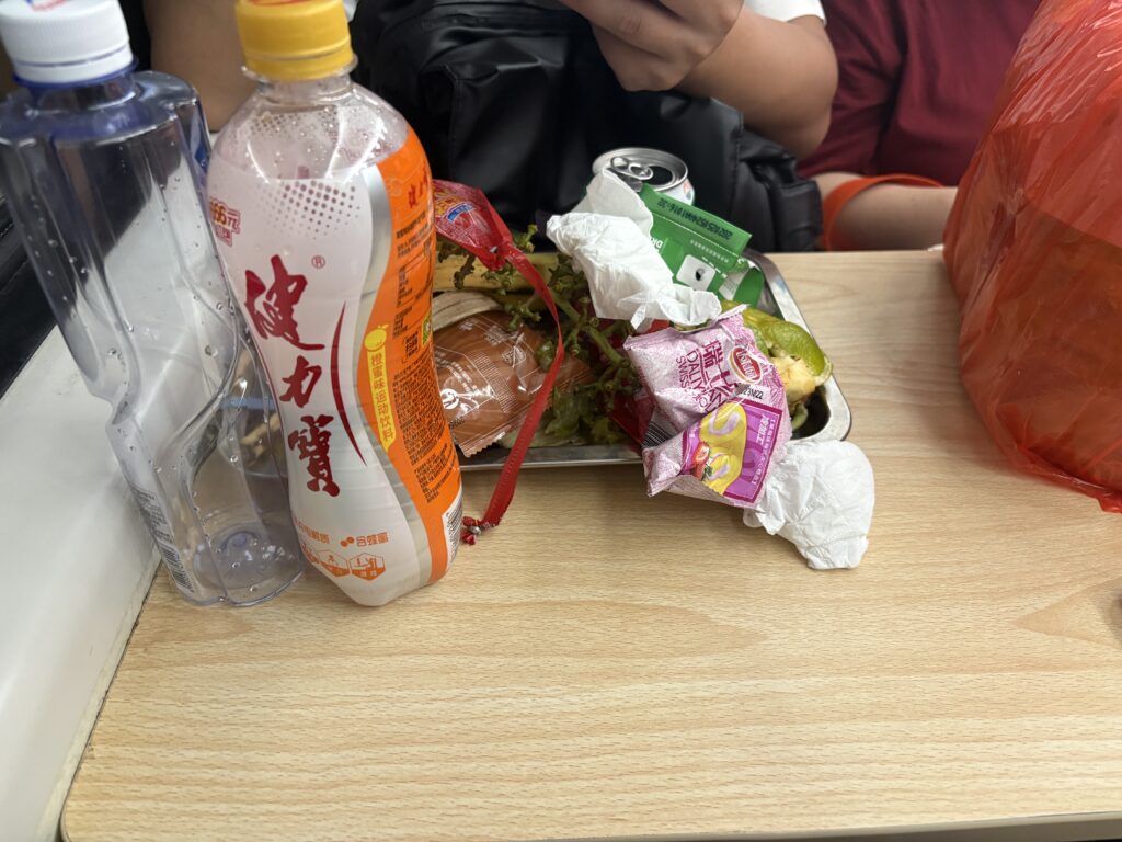 ちなみに帰りは、蘇州が始発ではないので前の駅から乗ってきた人のゴミが置いたままです。これも気にしない勇気を持ちましょう^^