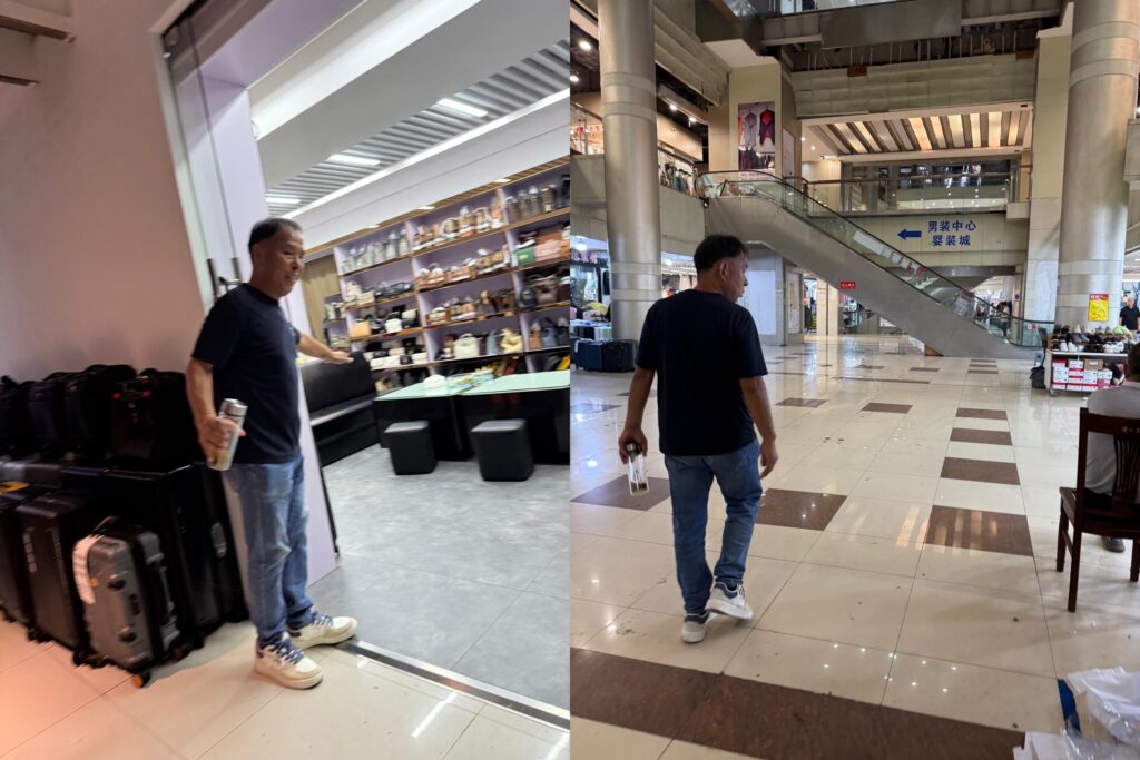 自転車を止めるや否や、元気な呼び込みのおじさんが「手表, 包包全都有!跟我来,这边更便宜‼️」と声をかけてきました。断って建物に入ったのですが、15分程後ろを付き纏われ、「ここはレディースだよ」「安い店紹介するからついてきなさい」と言われ、とうとう諦めて建物を案内してもらう形になりました、、、