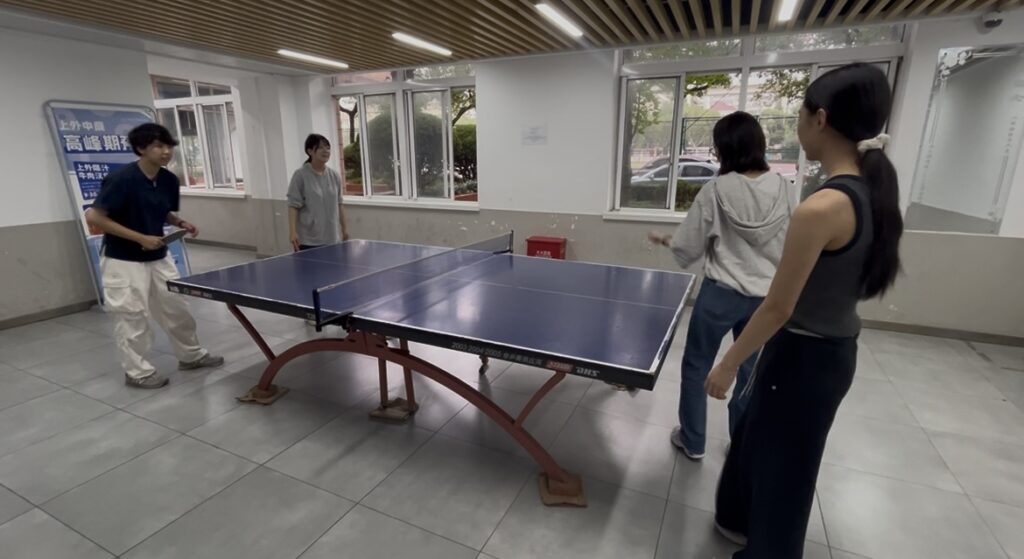 昼食のあとは、授業を受けている2号館の1階にある卓球台で友達と卓球をしました!