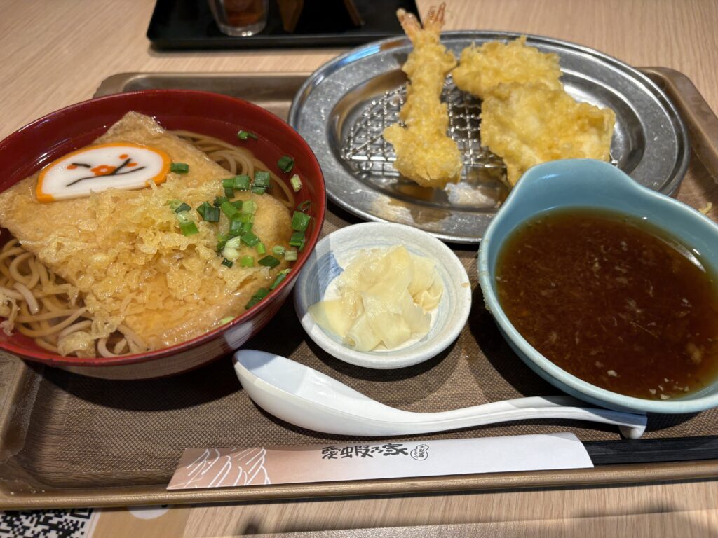 レストランも豊富で、日本のチェーンだとCoCo壱とかコメダ、金匠寿司(くら寿司)、他にもカツ丼屋さんとかしゃぶしゃぶ、上の階には居酒屋さんやお寿司屋さんもありました!僕はおうどんとめちゃくちゃ迷った結果おそばを食べました!